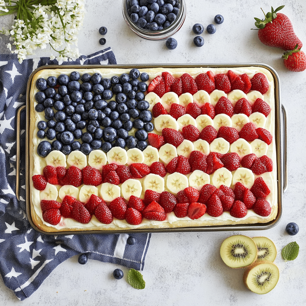 American Flag Fruit Pizza is a fun, fresh, and festive dessert that’s perfect for patriotic celebrations or any summer gathering. It combines the comforting chew of sugar cookie crust with creamy frosting and juicy seasonal fruit in a simple, eye-catching design. With flexible ingredients and endless presentation options, it’s a reliable go-to dessert that offers both beauty and flavor in every slice.