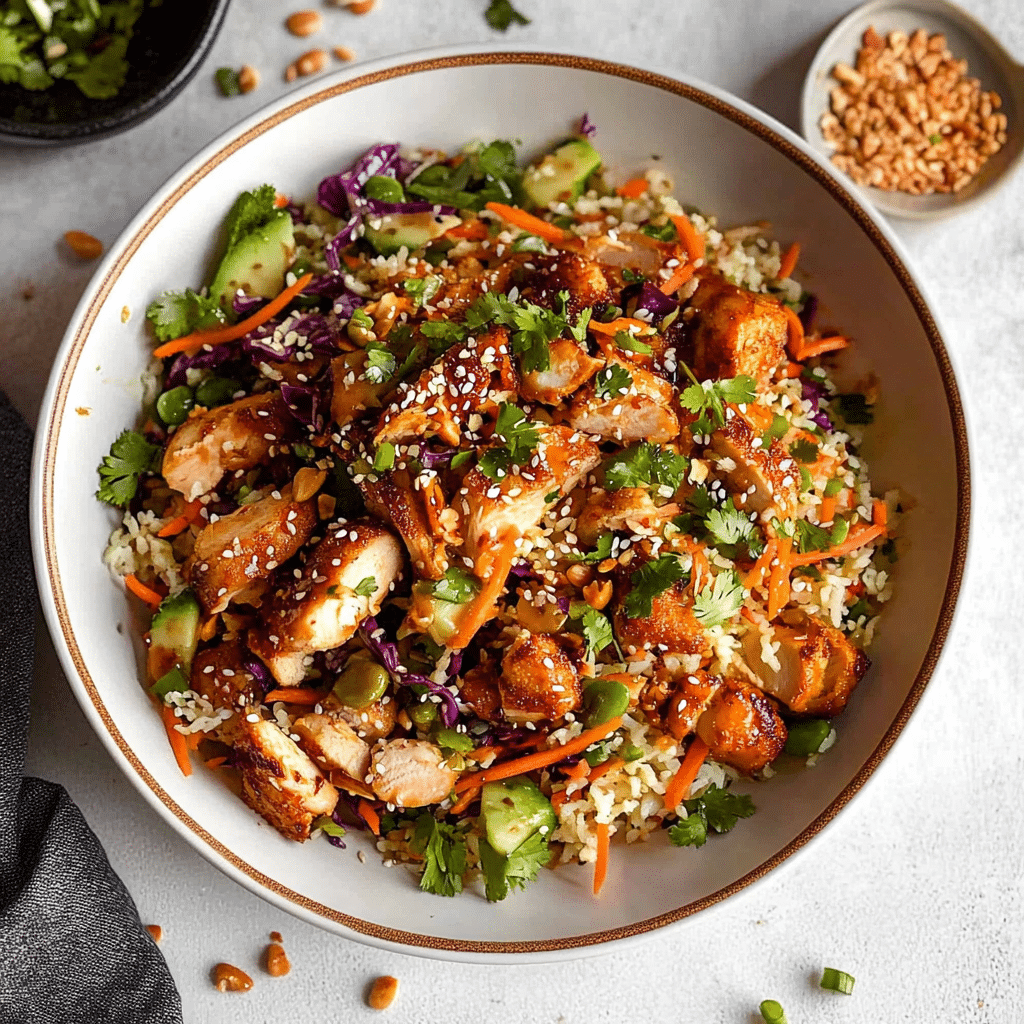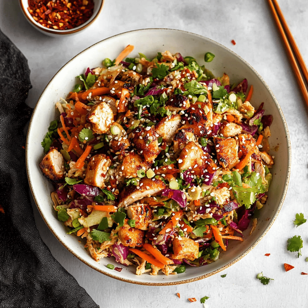 A vibrant and flavorful salad bursting with color and texture, this Asian Chicken Crunch Salad features juicy marinated chicken, crisp vegetables, and a creamy peanut dressing with a spicy kick. It’s packed with protein, fiber, and healthy fats—perfect for a nourishing lunch or dinner.