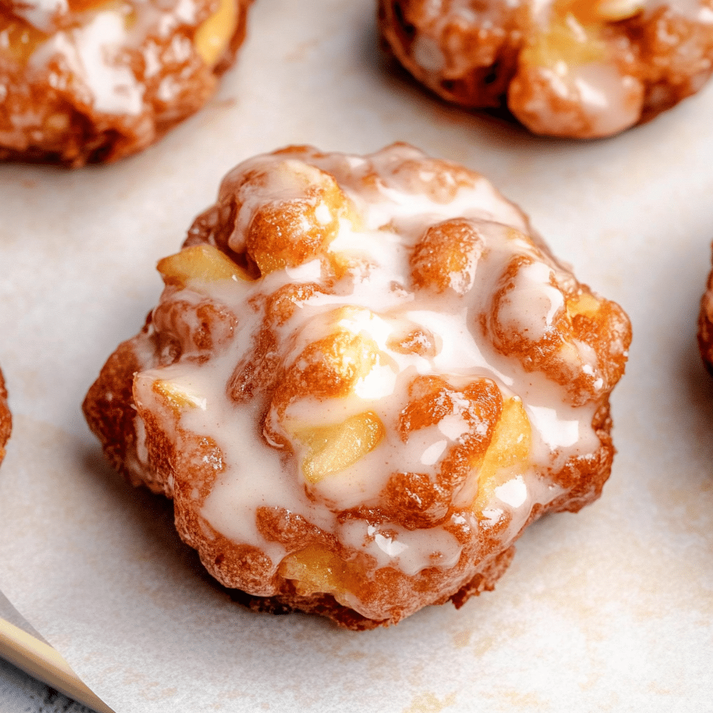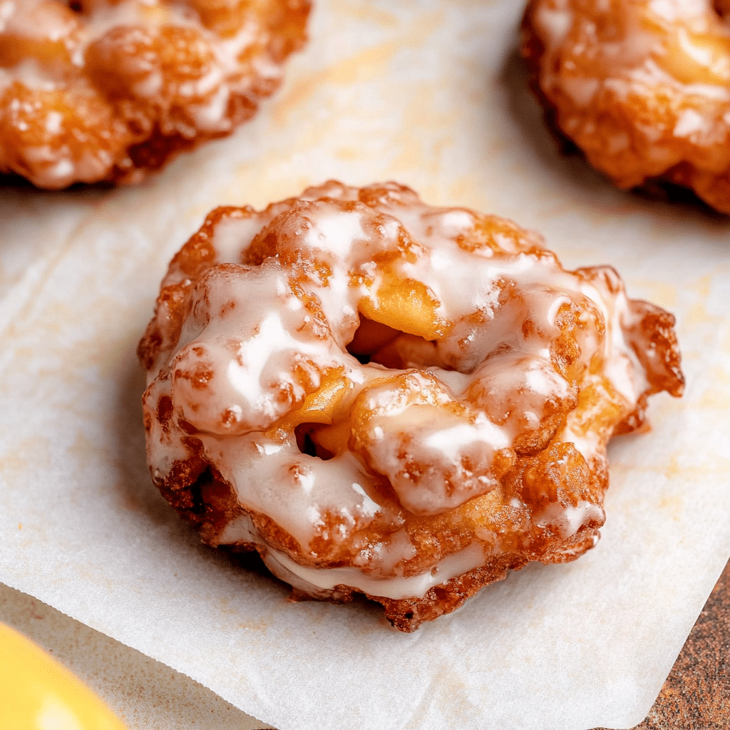 - Drizzle glaze over warm fritters before serving.
