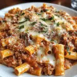 Baked Ziti with Meat Sauce is a comforting and flavorful dish that combines extra lean ground beef, rich marinara sauce, and a creamy ricotta filling, all topped with a gooey layer of mozzarella cheese. It’s an easy, satisfying meal perfect for feeding a crowd or enjoying a cozy family dinner.
