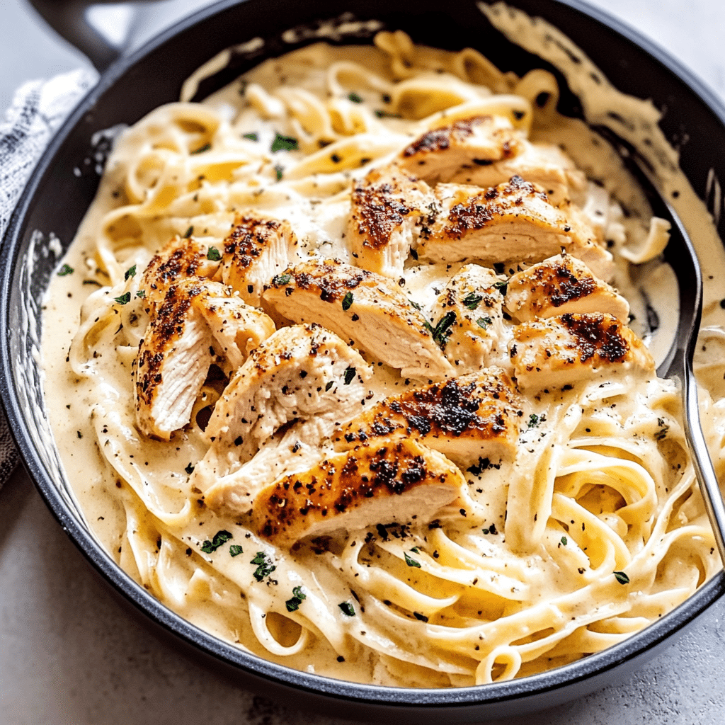 This Chicken Alfredo is the ultimate comfort food—creamy, rich, and packed with flavor. Tender chicken breasts are seasoned and pan-seared, then paired with a luscious Alfredo sauce made from butter, heavy cream, and freshly grated Parmesan. Served over fettuccine or linguine, this dish is perfect for a cozy dinner with family or friends.