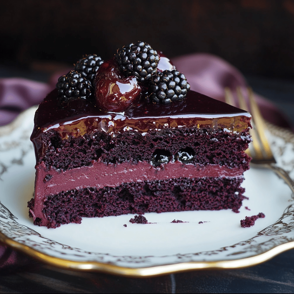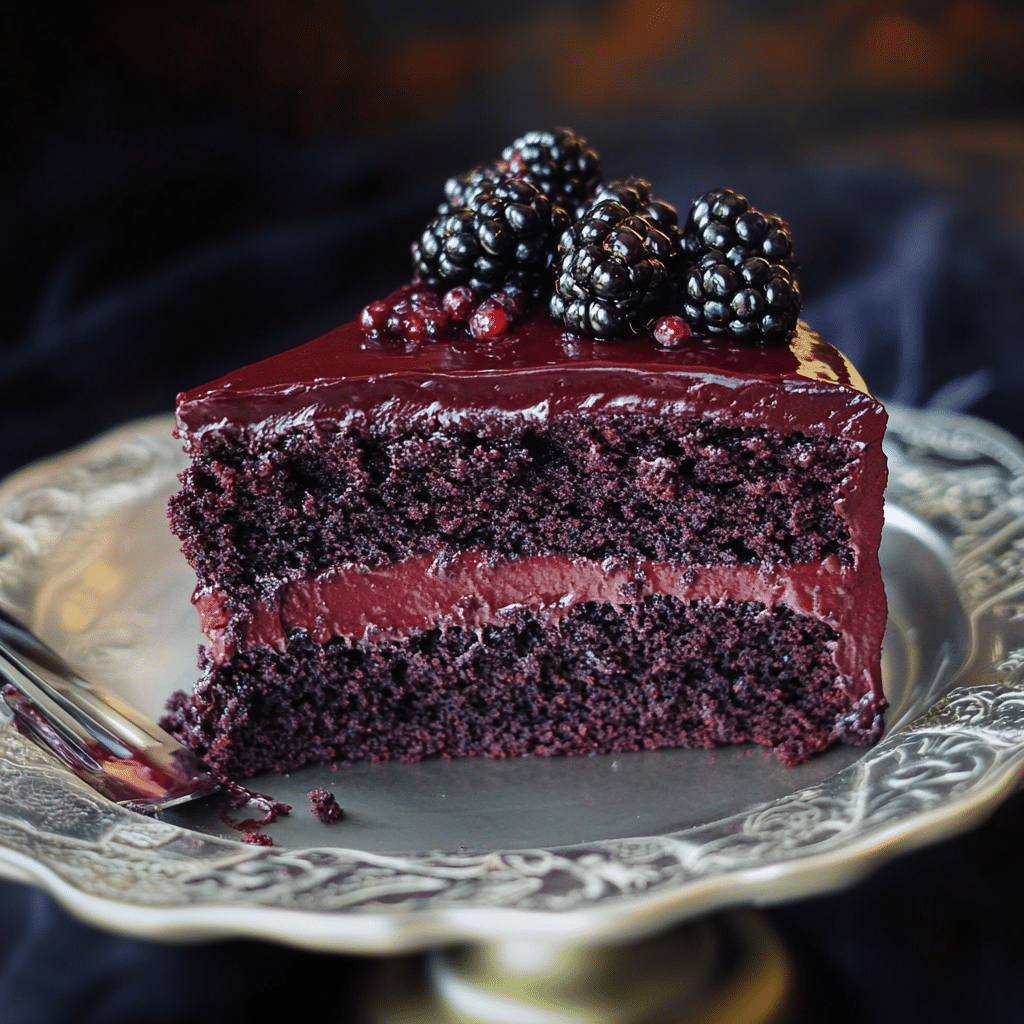 The Blackberry Velvet Gothic Cake is a strikingly rich, flavorful dessert that brings together the boldness of black cocoa and the brightness of blackberry. With its deep color, velvety crumb, and luxurious ganache, it’s designed for those who want to make a dramatic statement through dessert. Whether for a themed celebration or a unique twist on a classic layer cake, this recipe balances elegance and indulgence in every slice. It’s not just a cake—it’s an experience.