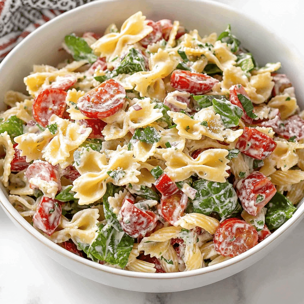 A BLT Pasta Salad takes everything you love about the classic bacon, lettuce, and tomato sandwich and transforms it into a cool, creamy, and satisfying pasta dish perfect for potlucks, cookouts, or easy lunches. This recipe blends the savory crunch of bacon, the freshness of spinach and tomatoes, and the richness of a tangy mayo-ranch dressing with tender bowtie pasta. The combination is a refreshing and hearty take on a salad, adding both comfort and freshness to your plate. Whether you’re hosting friends or prepping meals for the week, this dish will quickly become a staple in your rotation. The beauty of this BLT Pasta Salad lies in its balance of flavors and textures. The crisp bacon offers saltiness and depth, while juicy grape tomatoes add a pop of sweetness. The creamy dressing brings all the elements together with a hint of lemon and ranch flavor. A touch of red onion sharpens each bite, and spinach provides the “lettuce” component with a vibrant, earthy touch. It’s quick to assemble, endlessly customizable, and travels well—making it ideal for outdoor gatherings or weekday lunches. Once you try it, you’ll wonder how you ever lived without it.