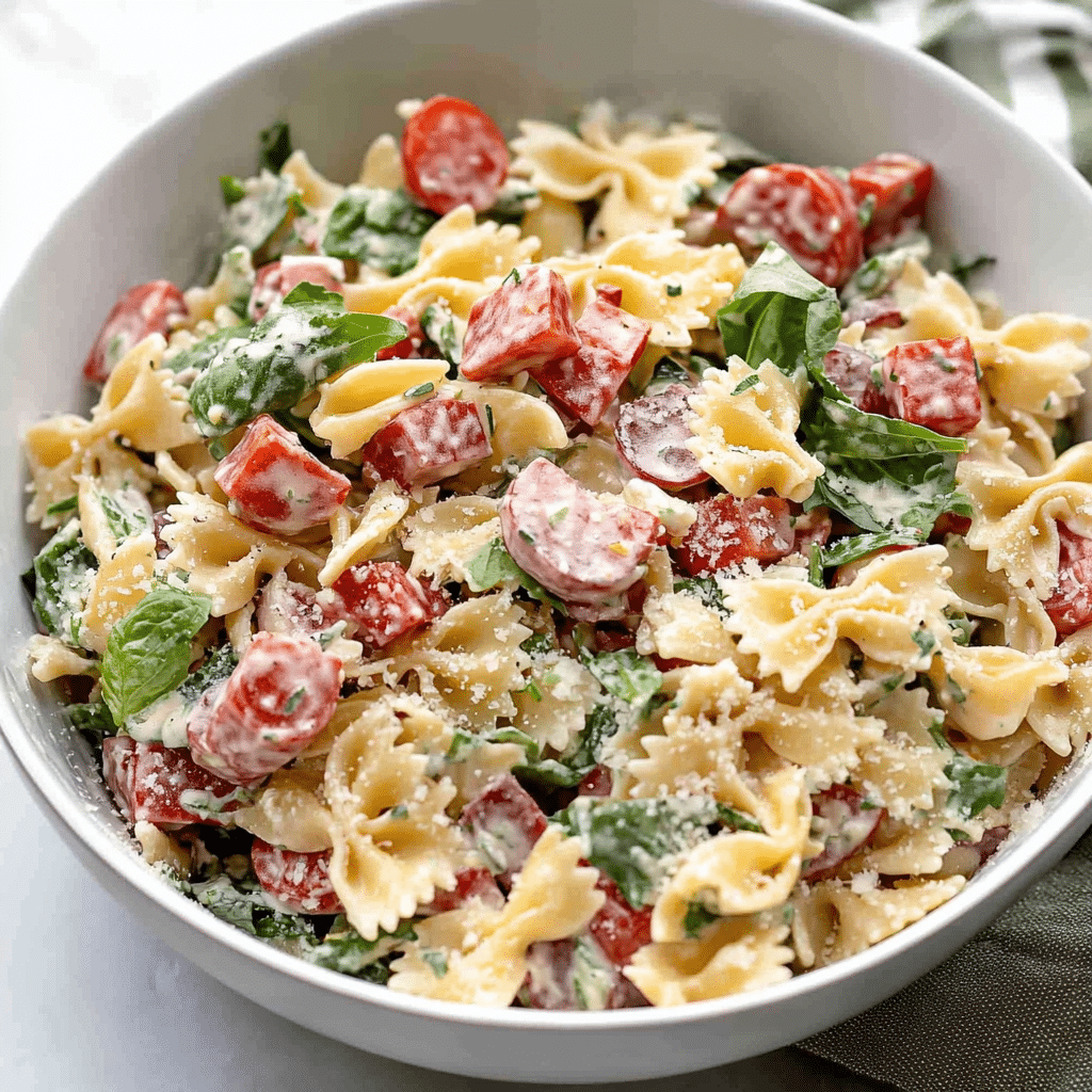 This BLT Pasta Salad is a refreshing and flavorful twist on the classic sandwich. Packed with crispy bacon, juicy tomatoes, fresh spinach, and a creamy ranch-mayo dressing, it’s perfect for potlucks, picnics, or a light summer meal.