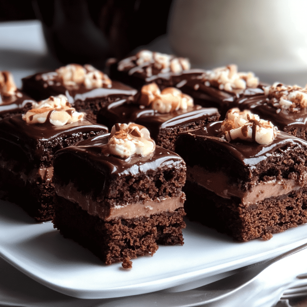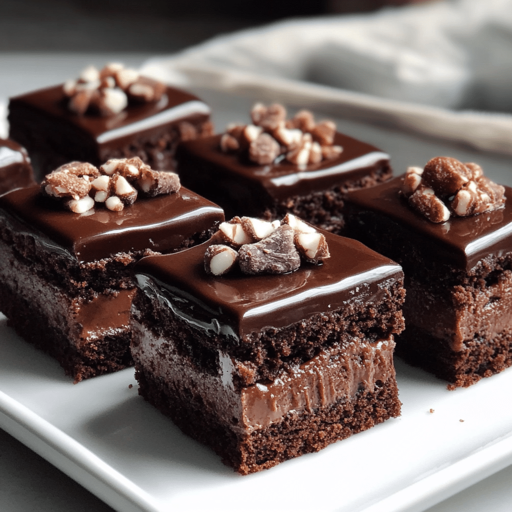 Delightful bite-sized brownie petit fours featuring a tender chocolate sponge cake layered with whipped chocolate ganache and toasted nuts. These elegant treats offer rich chocolate flavor and a creamy finish, perfect for parties, tea time, or special occasions.