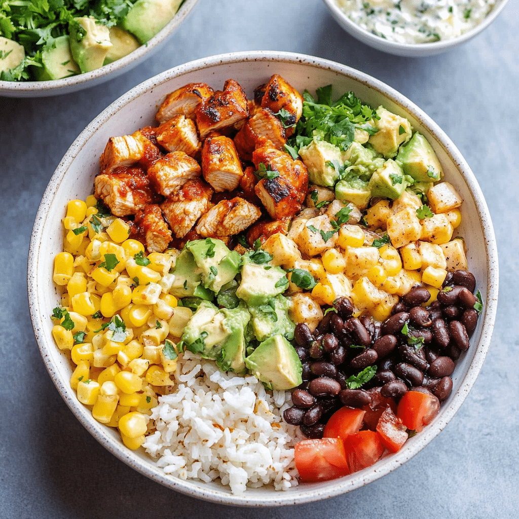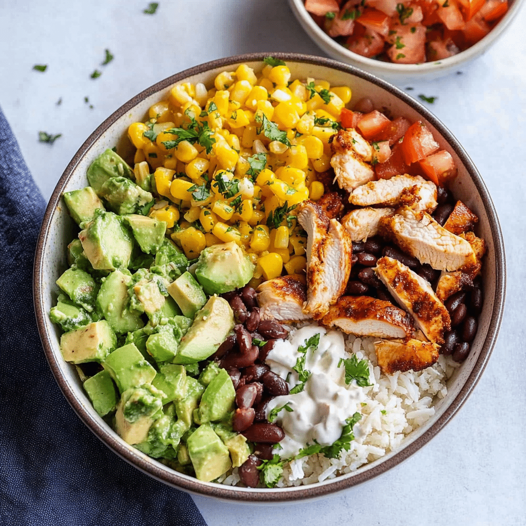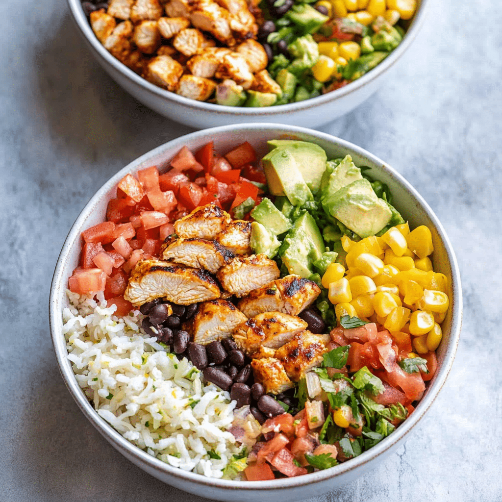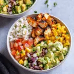 - Vegetarian Option: Skip the chicken and substitute grilled tofu, tempeh, or extra beans for a plant-based bowl.