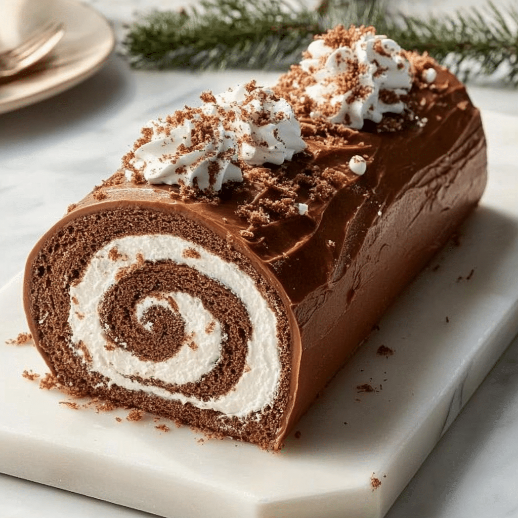 This Classic Yule Log, or Bûche de Noël, is a festive holiday dessert featuring a light chocolate sponge cake rolled with sweet almond whipped cream and covered in rich chocolate frosting. Elegant and nostalgic, it’s the perfect show-stopper for your Christmas table.