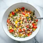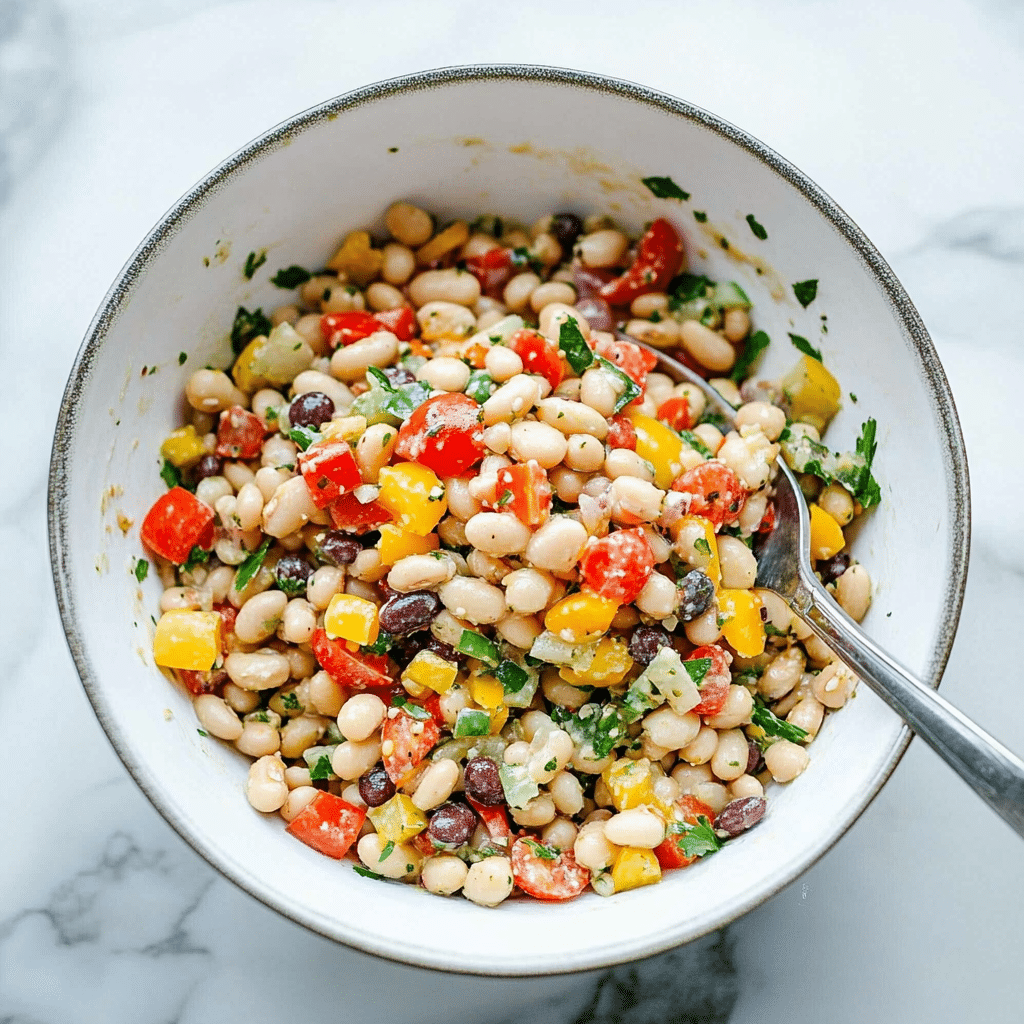 This vibrant and refreshing Rainbow Bean Salad is packed with colorful vegetables, protein-rich white beans, and bold Mediterranean flavors. Tossed in a zesty sun-dried tomato vinaigrette and sprinkled with fresh herbs and Parmesan, it’s perfect for a light lunch, side dish, or picnic staple.