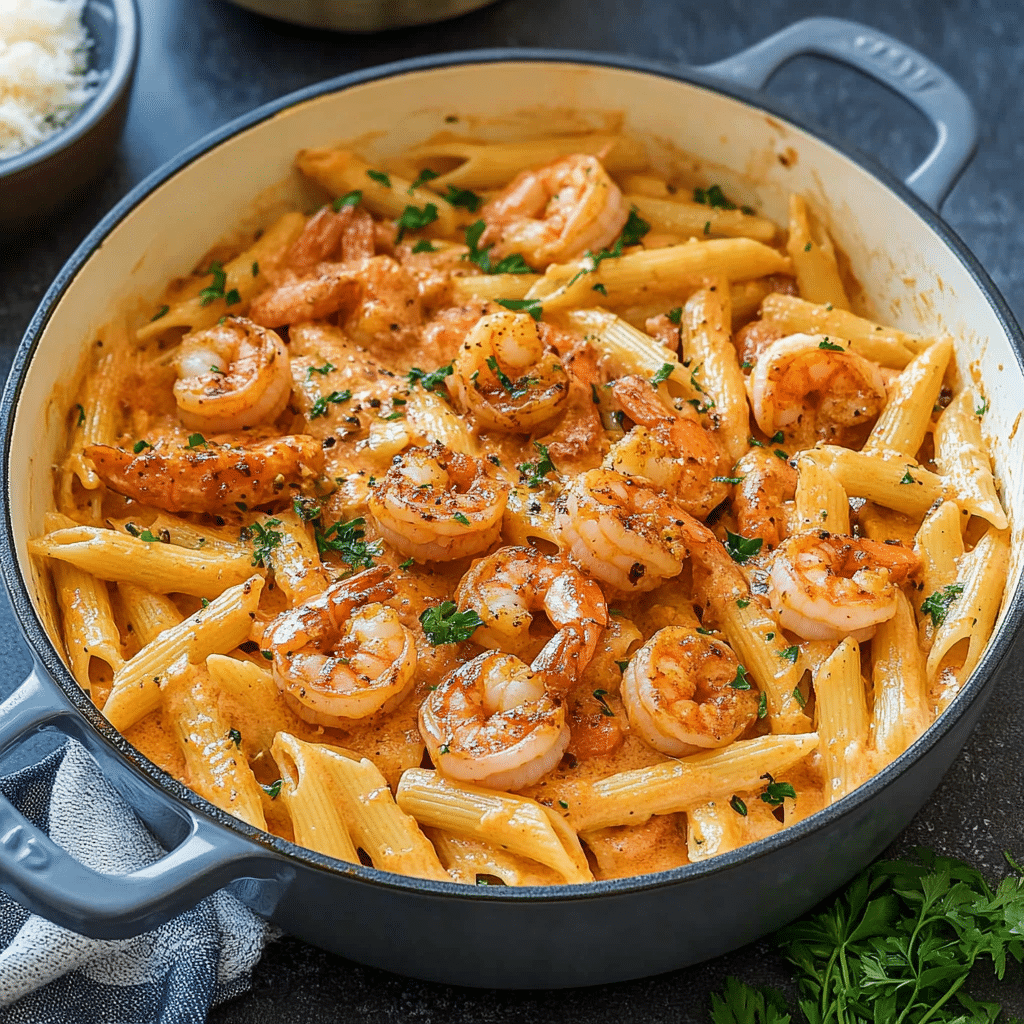 Indulge in a rich and flavorful dish featuring succulent shrimp, perfectly cooked penne pasta, and a creamy, spicy Cajun sauce. This easy-to-make recipe is a delightful weeknight dinner that brings a taste of the South to your table.