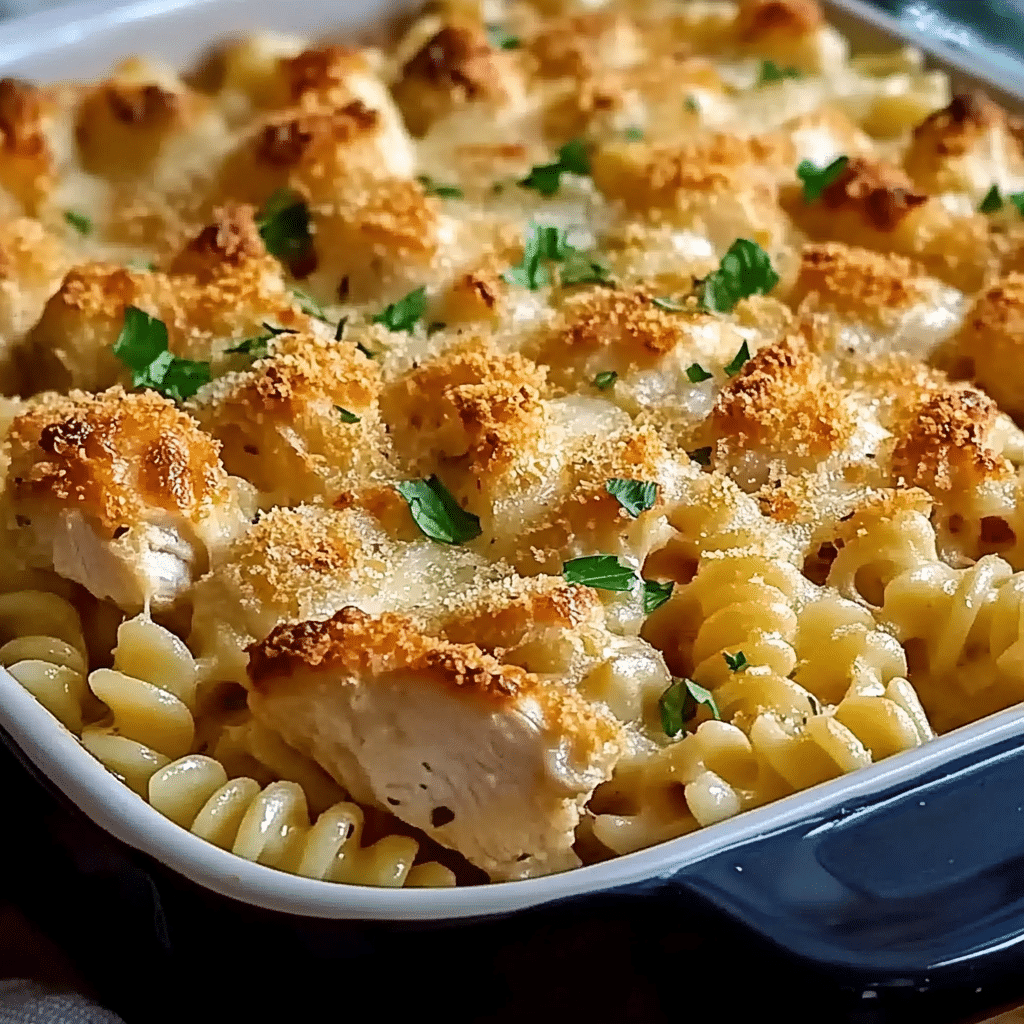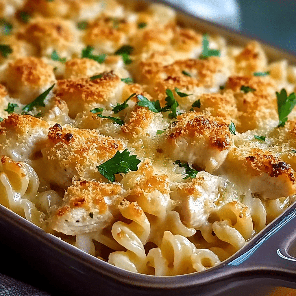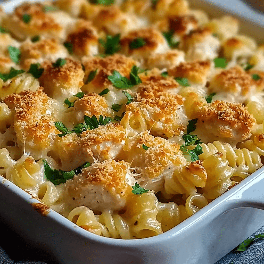 With just a few simple ingredients, you can create a dish that feels indulgent while being easy enough to prepare on a busy evening. The rotini pasta acts as the perfect vessel for soaking up all the creamy sauces, while the chicken adds heartiness and protein. Topped with mozzarella and Parmesan cheese, the result is a cheesy, satisfying bake that will leave everyone coming back for seconds. The sprinkle of fresh parsley on top is the perfect finishing touch, adding a burst of freshness to this creamy, comforting meal.