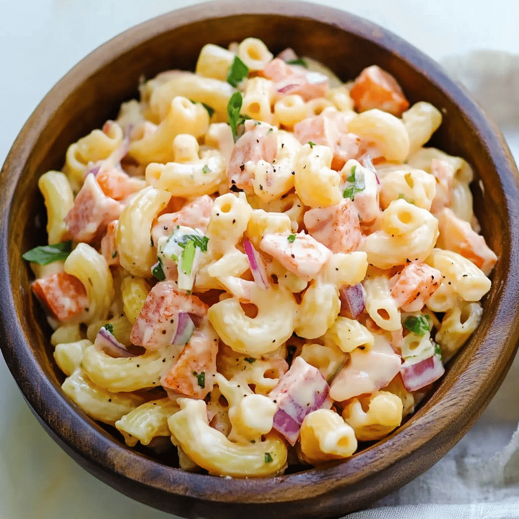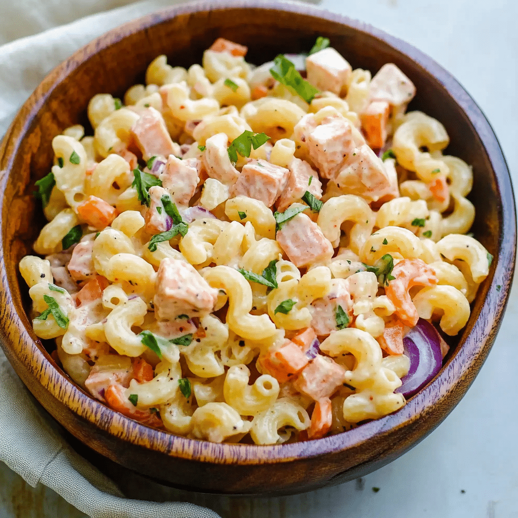 Hawaiian Pasta Salad is a delightful and refreshing dish that combines tropical flavors with the comfort of pasta. It’s the perfect dish for picnics, potlucks, or as a side for grilled meats. The sweetness of pineapple, the savory ham, and the creamy dressing all come together to create a balance of flavors that’s sure to impress. The addition of Greek yogurt in the dressing gives it a slight tang, while the pineapple juice adds a natural sweetness that elevates the entire salad. The crunchy carrots and green onions provide texture, while the elbow macaroni brings everything together in a satisfying way. Easy to prepare and full of vibrant flavors, this salad makes a fantastic addition to any meal or event.