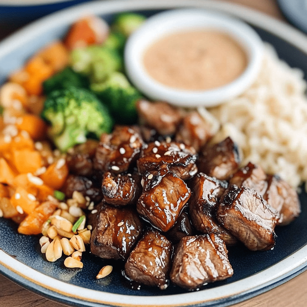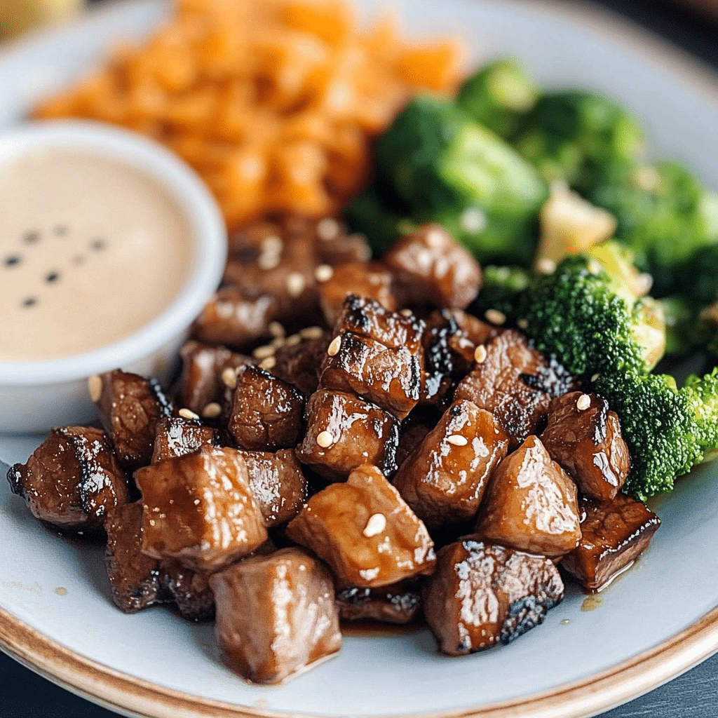 - 1 lb boneless steak (sirloin or filet), cut into bite-sized pieces