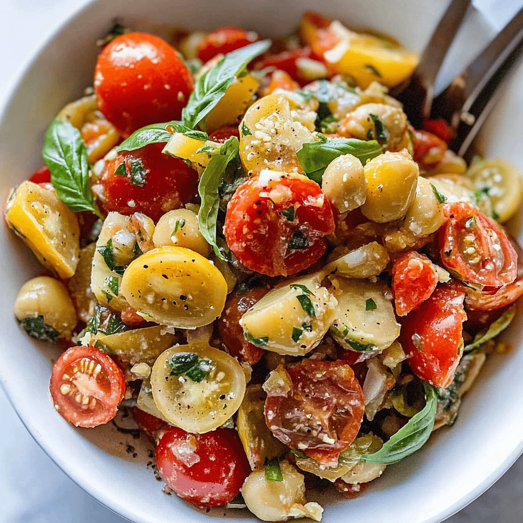 Bursting with vibrant Mediterranean flavor, this High Protein Tomato Basil Salad is a plant-based meal that’s as nourishing as it is delicious. Designed to deliver balanced, plant-powered nutrition, it combines juicy grape tomatoes, marinated artichoke hearts, fresh basil, chickpeas, and a touch of fresh mint for brightness. It’s protein-rich, satisfying, and comes together in minutes, making it a perfect option for quick lunches, post-workout meals, or even a simple dinner.