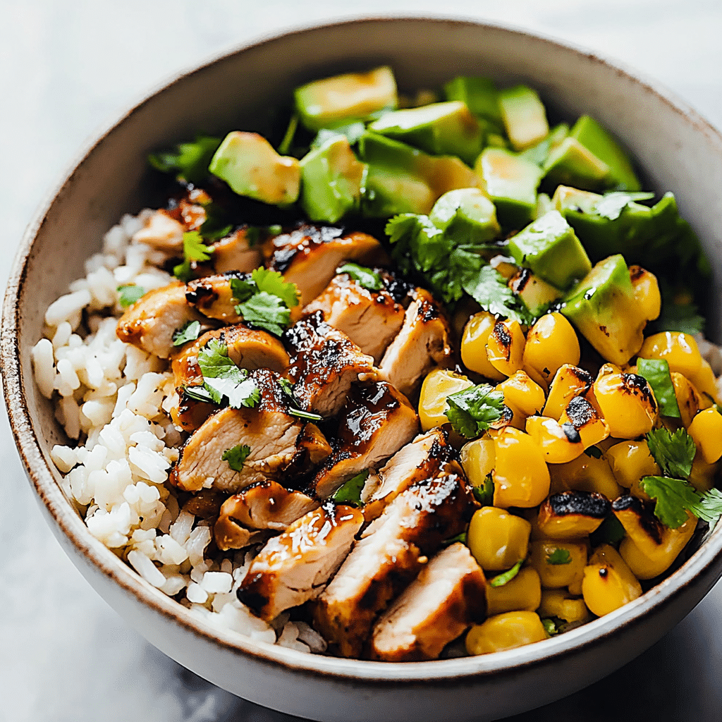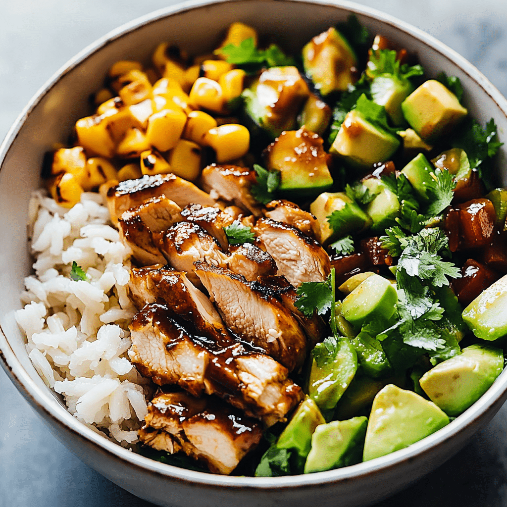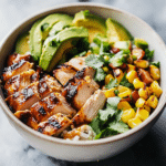 If you’re looking for a vibrant, flavorful meal that combines a smoky kick with a touch of sweetness, these Honey Chipotle Chicken Rice Bowls are a perfect choice. The juicy, tender chicken is infused with the heat of chipotle peppers and the sweetness of honey, creating a mouthwatering combination that’s perfect for any time of day. Paired with a deliciously fresh base of rice, black beans, corn, and avocado, this dish is both satisfying and wholesome. Topped with a zesty lime dressing and fresh cilantro, every bite is packed with flavor.