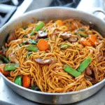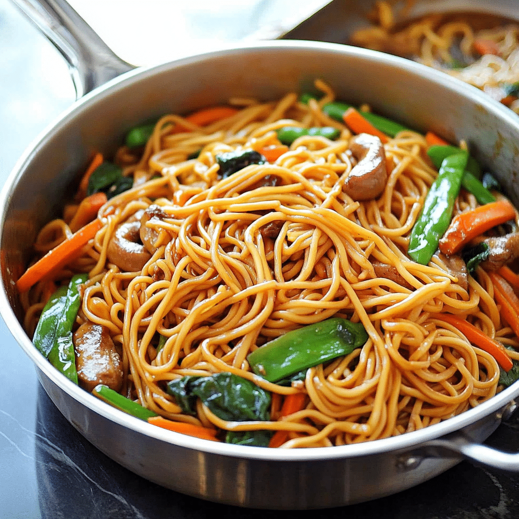 A classic Lo Mein recipe featuring tender egg noodles tossed with sautéed mushrooms, colorful vegetables, and a savory, slightly spicy sauce. Quick to make and perfect for a satisfying weeknight meal.