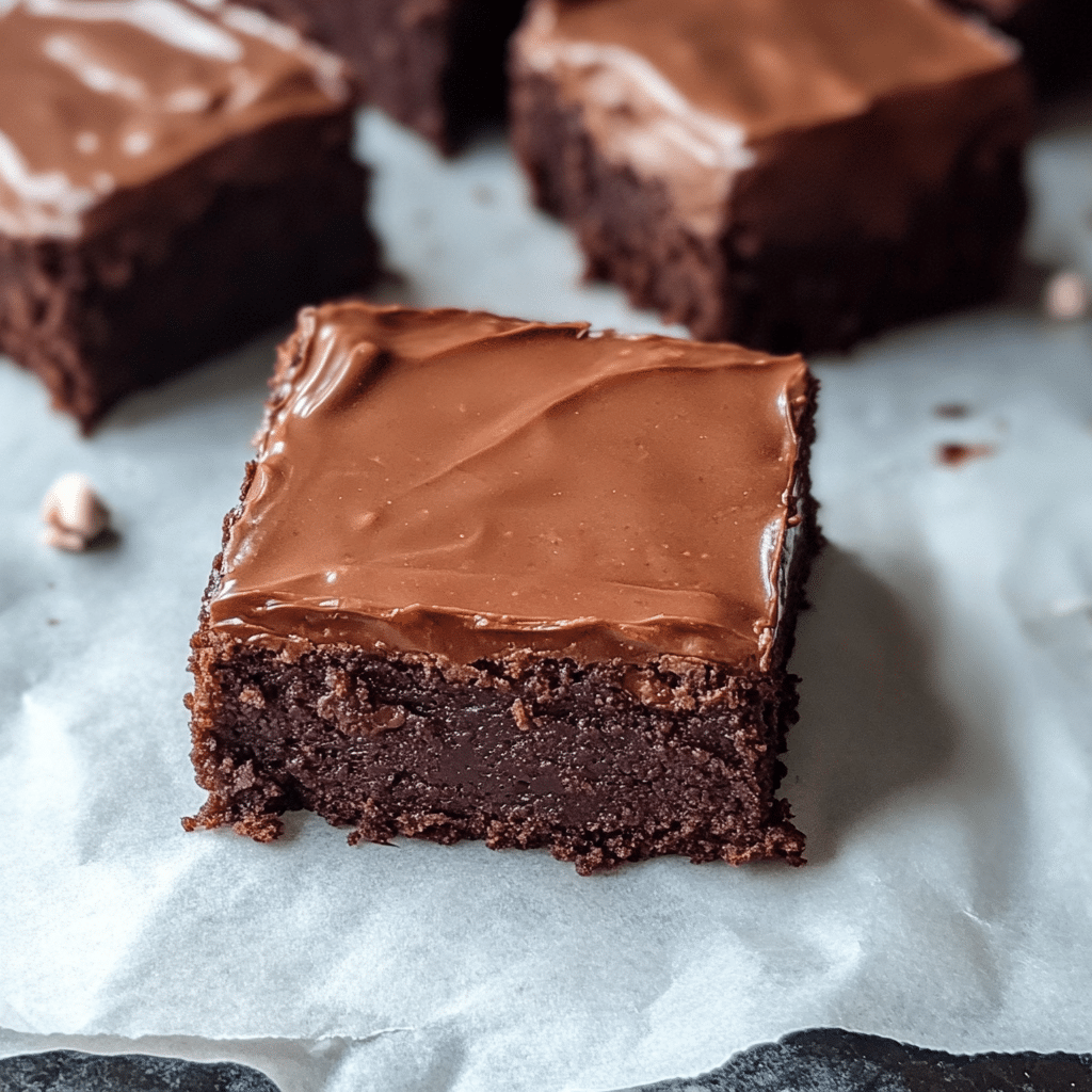 Classic fudgy brownies topped with a rich, creamy chocolate frosting. These brownies are moist and perfectly sweet, making them a favorite for any occasion.