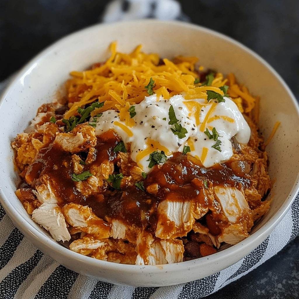 This Macro Friendly BBQ Ranch Chicken Bowl is a great option for anyone looking to fuel their body with protein and delicious flavors. Packed with lean protein from the chicken and a good amount of healthy fats and fiber, this dish is perfect for those on a high-protein, low-calorie diet. The combination of BBQ sauce and ranch dressing creates a perfect balance of tangy, smoky, and creamy flavors. Topped with reduced-fat shredded cheddar and a scoop of low-fat cottage cheese, this dish is both satisfying and nourishing, offering 42g of protein to keep you energized throughout the day. Whether you’re meal prepping for the week or looking for a quick dinner, this bowl will hit the spot.
