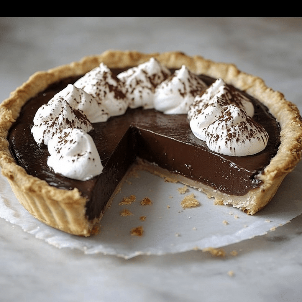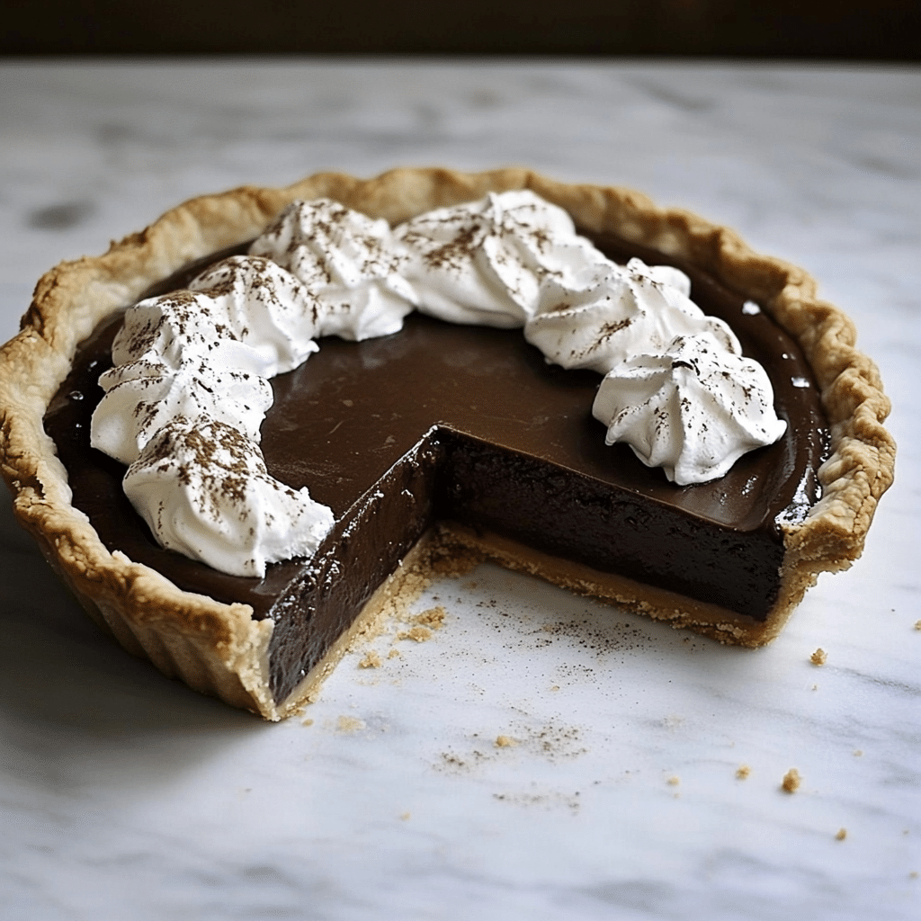 Serve this pie chilled or slightly closer to room temperature for the best texture. Top each slice with lightly sweetened whipped cream or a dusting of cocoa powder. It pairs beautifully with a cup of espresso, coffee, or even a small glass of dessert wine. For a festive touch, sprinkle a little cinnamon or shaved chocolate over the top before serving.