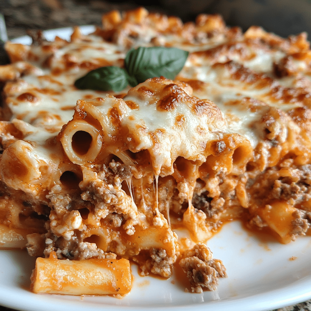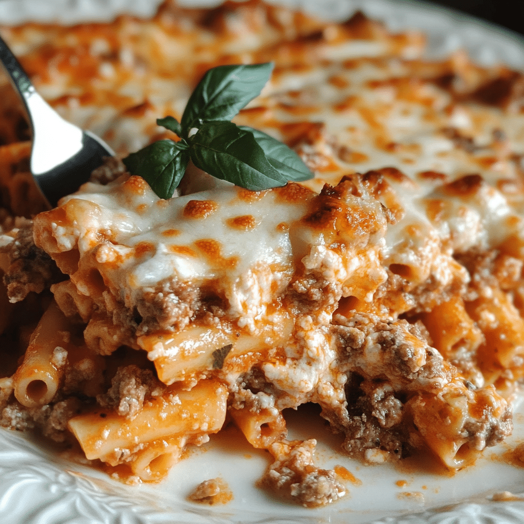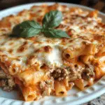 This recipe is also highly customizable. You can switch out the ground beef for Italian sausage or even use a combination of the two, depending on your flavor preference. You can make it spicier by increasing the amount of red pepper flakes or keep it mild for a kid-friendly version. The dish also makes fantastic leftovers, so it’s ideal for meal prep or feeding a crowd. Whether it’s a weeknight meal or a special occasion, this baked ziti is sure to be a hit.