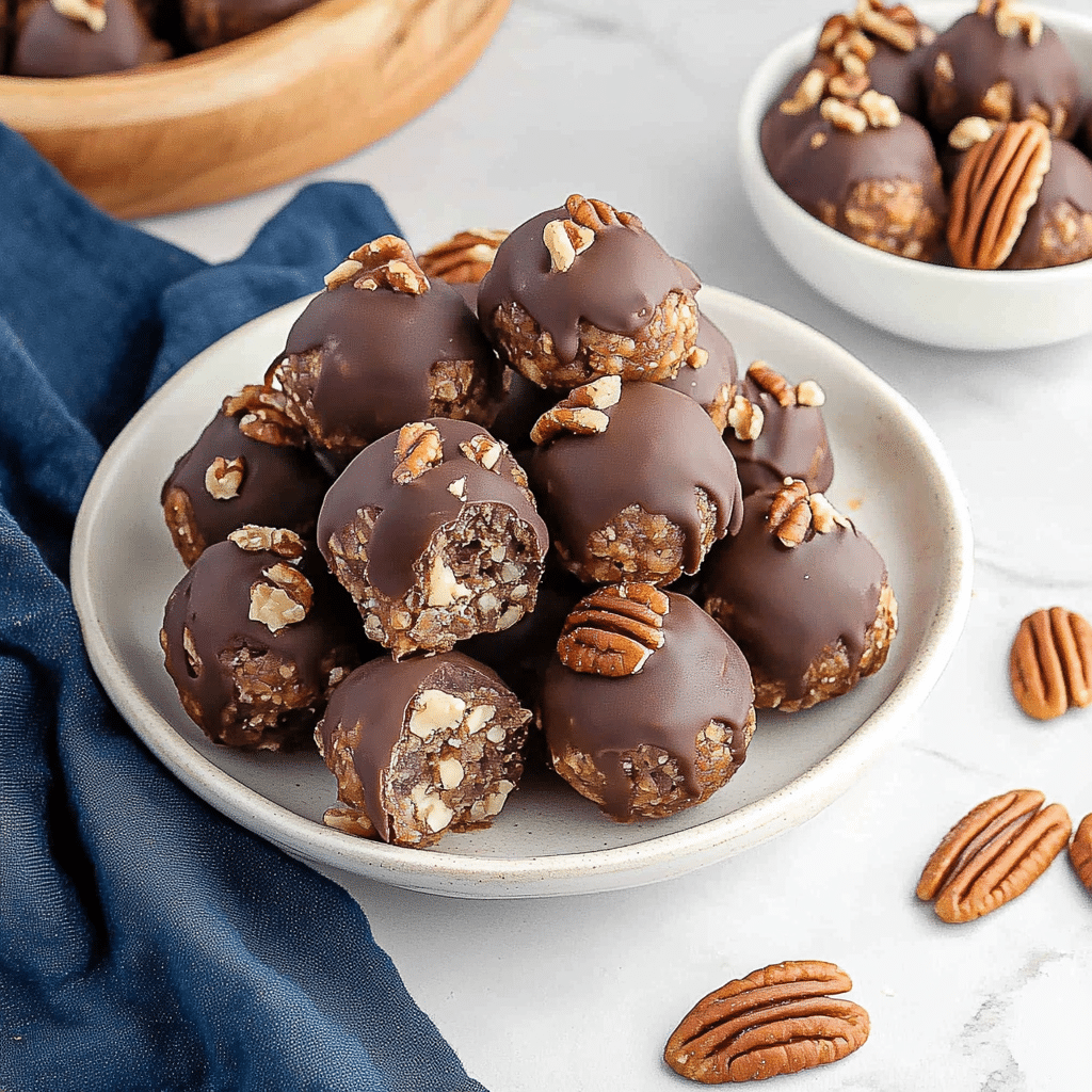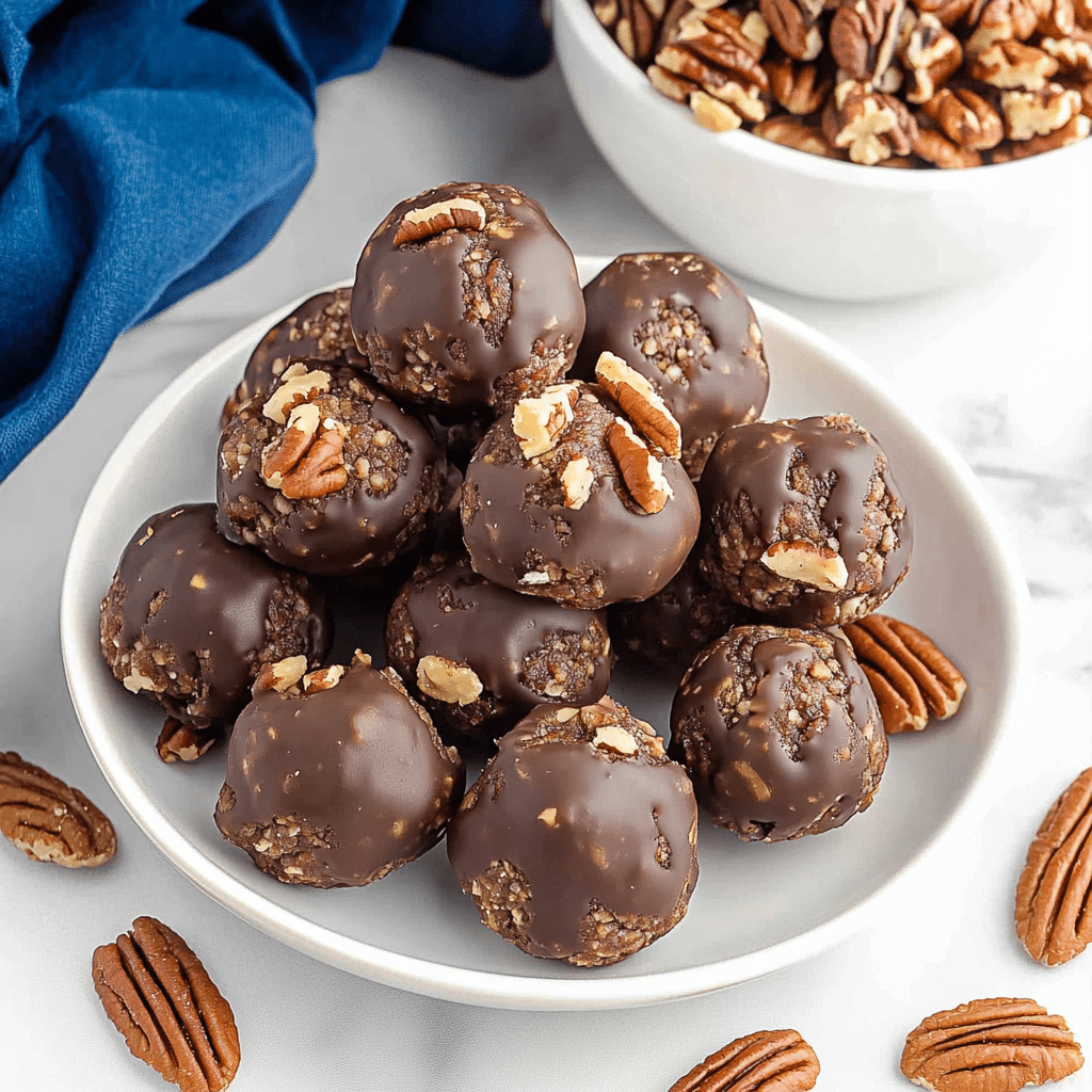 Pecan Pie Balls are a bite-sized, no-bake twist on the traditional Southern pecan pie, and they deliver all the flavor of the classic dessert in a fraction of the time. Perfect for holidays, parties, or cozy evenings at home, these indulgent treats feature the irresistible combination of finely chopped pecans, graham cracker crumbs, and sweeteners like brown sugar, maple syrup, and corn syrup. The mix is held together with butter and flavored with a hint of rum extract, then rolled into balls and dipped in smooth, melted semi-sweet chocolate.