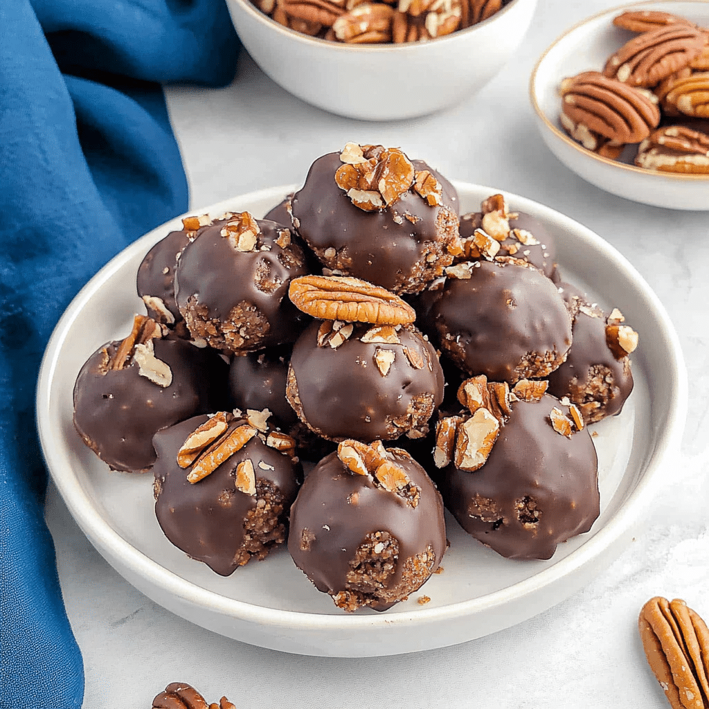 These Pecan Pie Balls are a bite-sized twist on the classic pecan pie, offering all the rich, nutty, and buttery flavor without the need for baking. Perfect for holiday gatherings or as an indulgent treat, they combine toasted pecans, graham cracker crumbs, brown sugar, and a hint of rum extract, all coated in smooth semi-sweet chocolate.