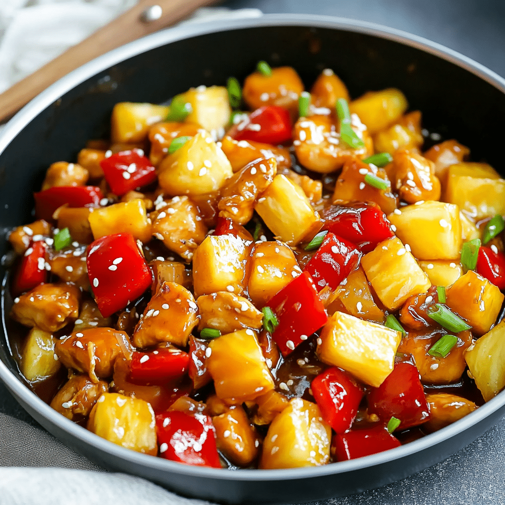This recipe is ideal for busy families and home cooks who want big flavor without the hassle. With minimal prep time and only one pan required, it’s a go-to meal that tastes indulgent but is easy enough to throw together after a long day. The combination of sweet pineapple, savory chicken, and a rich, sticky sauce served over rice or noodles hits all the right notes. It’s a crowd-pleasing favorite that’s endlessly adaptable — perfect for customizing with the veggies you have on hand or adjusting the sauce to your taste preferences. Whether you’re feeding picky eaters or looking to add more color and flair to your weekly meal rotation, this Pineapple Chicken Stir-Fry delivers on every front.