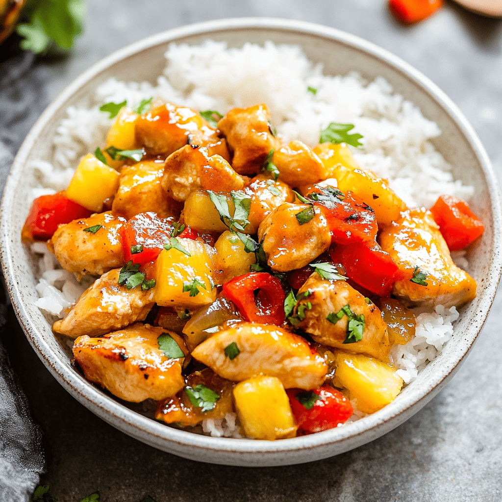- Balanced flavor profile with sweet pineapple, spicy chili, and savory chicken.