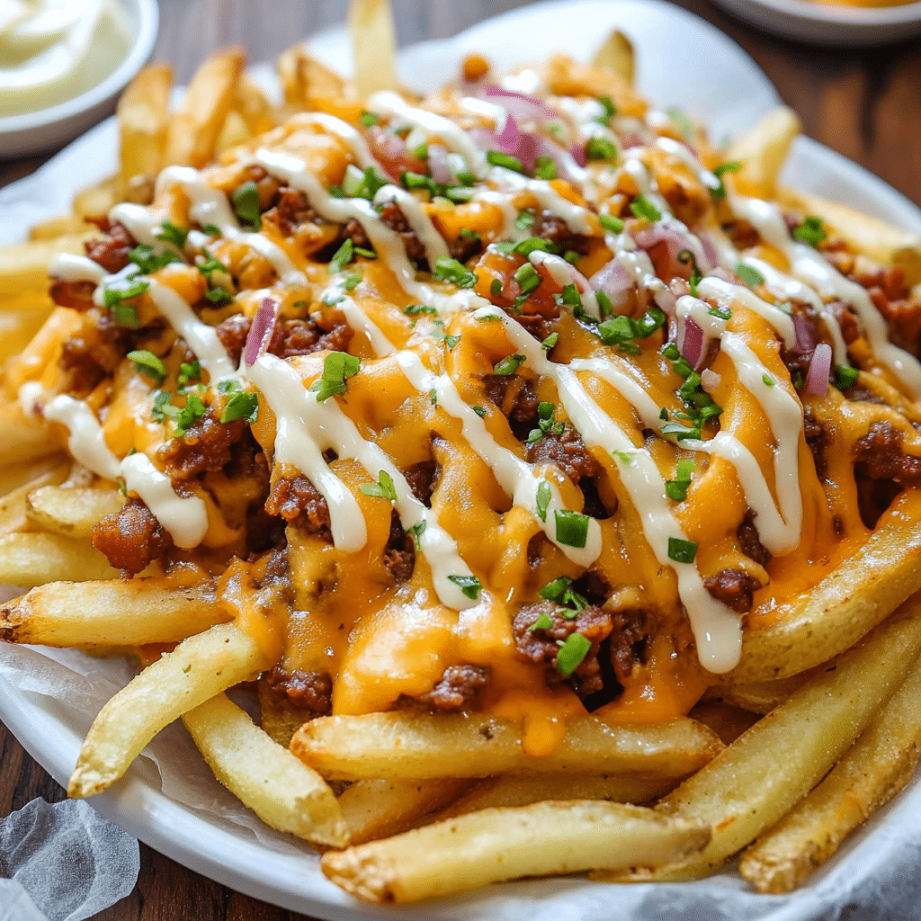 Golden, crispy fries layered with flavorful beef, creamy cheese sauce, and a mountain of irresistible toppings—Cheesy Loaded Beef Fries are …