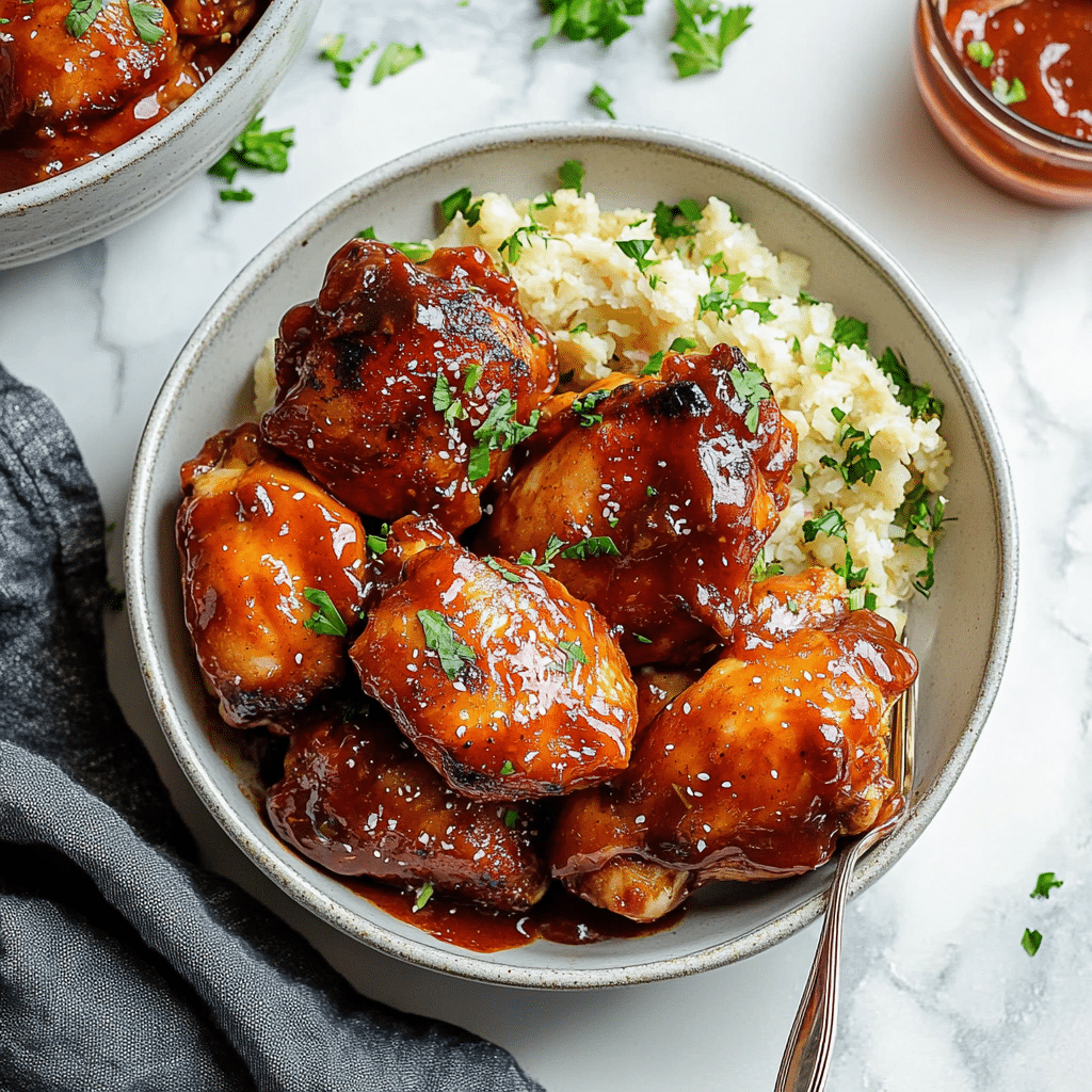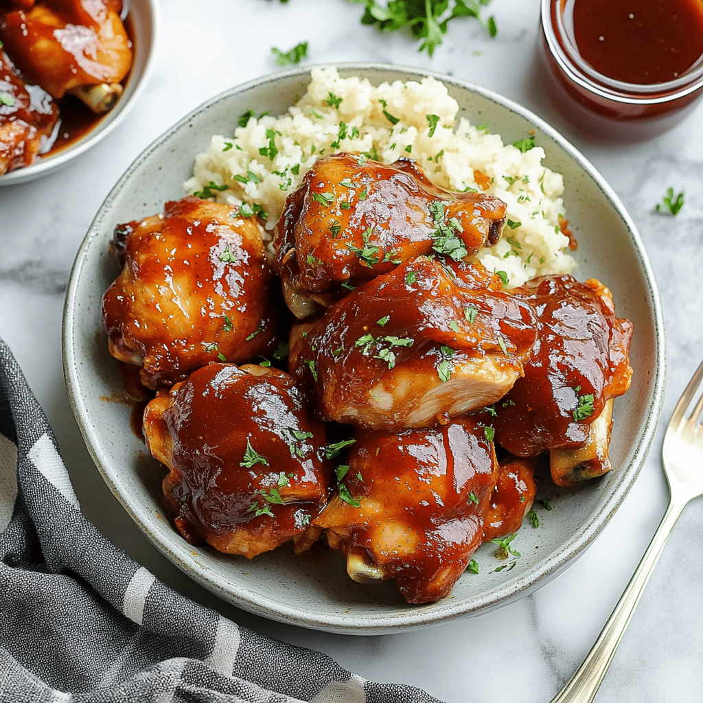 The smoky paprika and garlic powder complement the sweet and tangy BBQ sauce, creating layers of flavor that are both comforting and exciting. This dish is ideal for feeding a crowd, meal prepping for the week, or simply enjoying a low-fuss dinner that tastes like it came from your favorite barbecue joint. Whether you serve it with classic sides like coleslaw, baked beans, or cornbread, or pile it high on buns for sandwiches, these chicken thighs will satisfy every craving.
