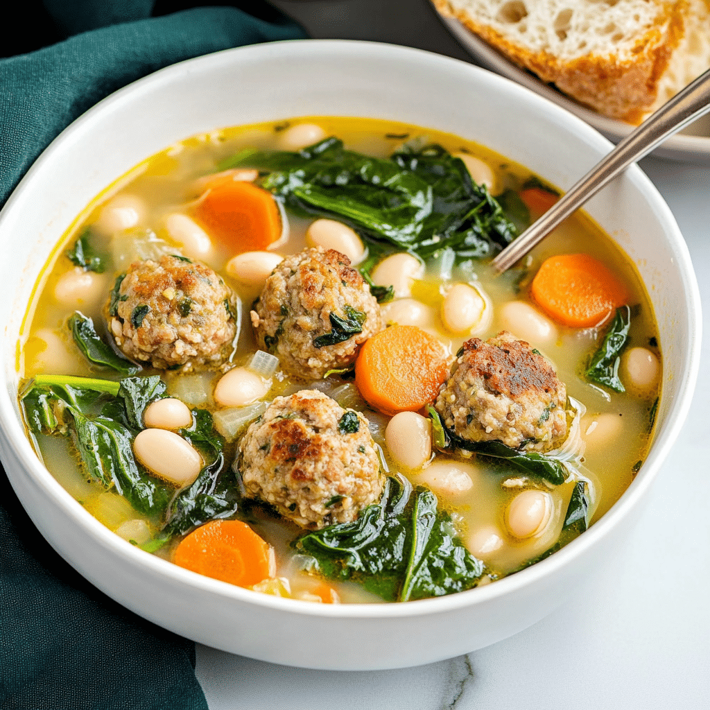 Ideal for chilly evenings or when you need a comforting dish that doesn’t skimp on nutrition, this soup is both filling and wholesome. The sausage meatballs bring depth and savory flavor, while the beans and vegetables contribute texture and heartiness. The fresh spinach adds color and a touch of earthiness, balancing the richness of the creamy broth. Even better, this soup tastes even more delicious the next day, making it a great make-ahead meal for busy weeks. Whether you’re serving a crowd or meal-prepping for the week, this recipe delivers on every level—flavor, convenience, and comfort.