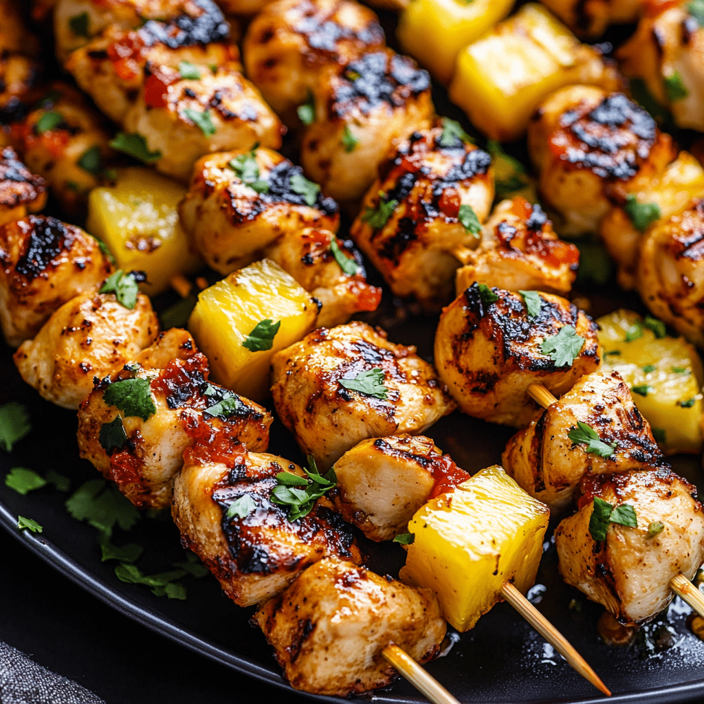 Sweet and Spicy Grilled Chicken and Pineapple Skewers