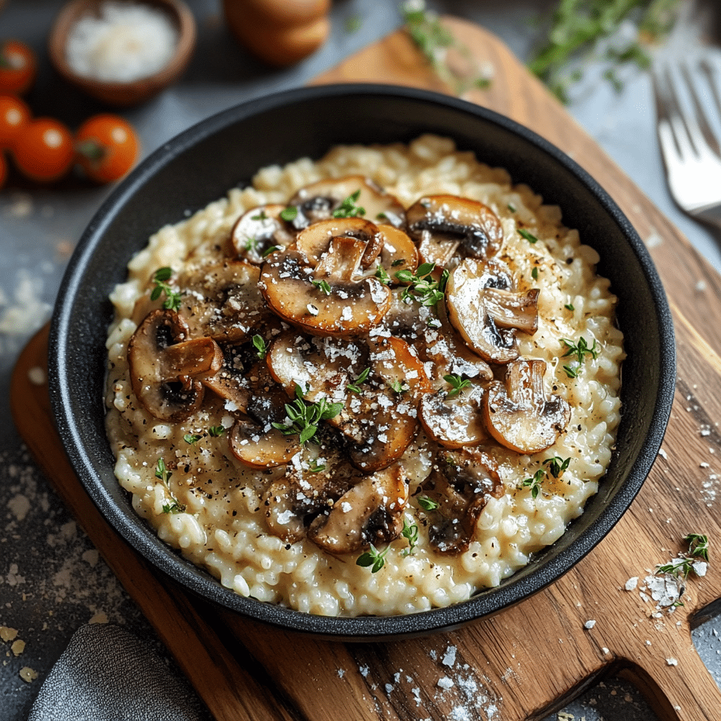 This Mushroom Risotto can be served on its own as a rich and satisfying meal. If you want to make it a more complete dinner, pair it with grilled chicken, roasted vegetables, or a fresh green salad. It also works wonderfully as a side dish to accompany steak, fish, or any roasted meats. For a truly decadent meal, top the risotto with a poached egg or a sprinkle of extra Parmesan cheese.