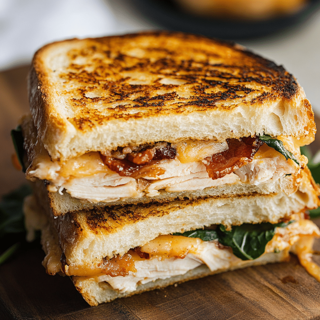 This Turkey Melt with Cheddar, Spinach, and Bacon is the ultimate sandwich for those who crave a comforting yet flavorful meal. Packed with savory deli turkey, crispy bacon, creamy cheddar, and fresh spinach, all sandwiched between two slices of golden, crispy sourdough bread, this melt is a perfect blend of textures and tastes. Whether you’re looking for a quick lunch or an easy dinner, this sandwich is sure to hit the spot.